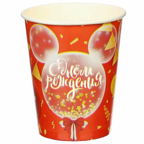 Стакан бумажный "С Днем Рождения!", 250 мл, Микки Маус