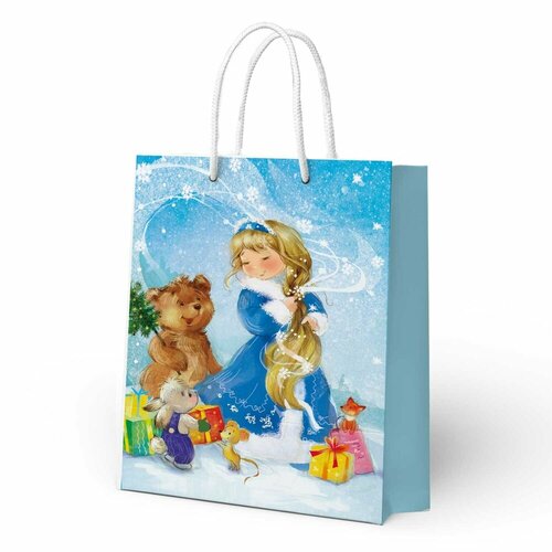 Пакет подарочный "Мишка и Снегурочка", 250*350*100 мм