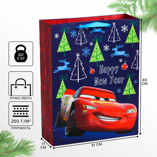 Новый год. Пакет подарочный, 31х40х11 см, упаковка, Тачки