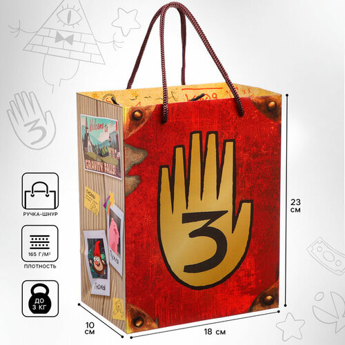 Пакет подарочный, 18х23х10 см, упаковка, Гравити Фолз