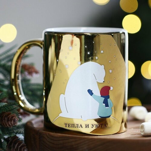 Кружка «С Новым Годом!» цветы, бежевый фон, 320 мл