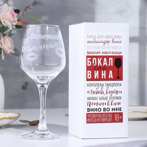 Бокал для вина "Осторожно, девичник!" гравировка, 350 мл 9273722