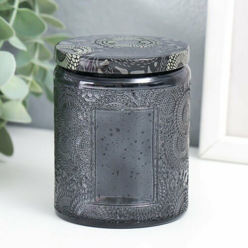 Банка для свечей стекло с крышкой "Цветочная" серая, цилиндр, гальваника 9х7х7 см