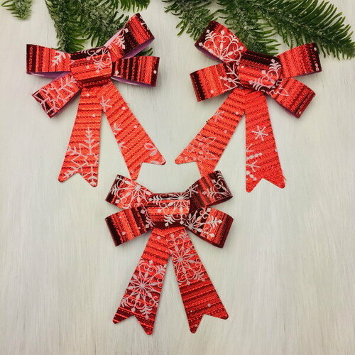 Бант на ёлку "Снежинка" 10*12 см (набор 3шт), Красный