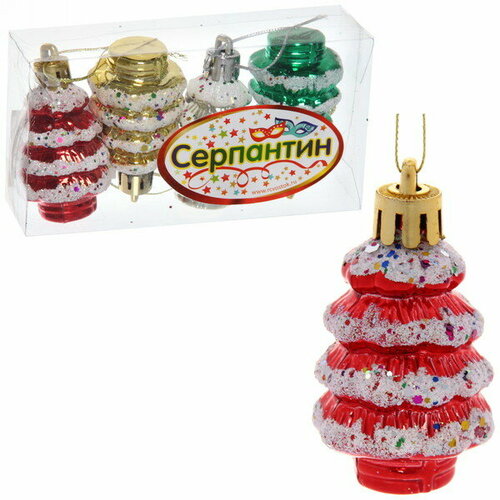Ёлочные игрушки "Ёлочки микс цветов" 6*3,5см (набор 4шт)