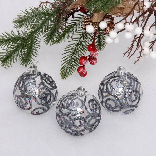 Новогодние шары 7см (набор 3шт) "Зимние узоры", графит