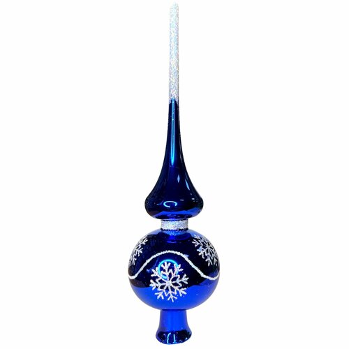 Елочка Елочная верхушка Вензель 28 см синяя, стекло С 2148