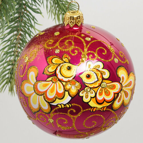 Елочка Стеклянный елочный шар Русский стиль 9 см фуксия С 2004