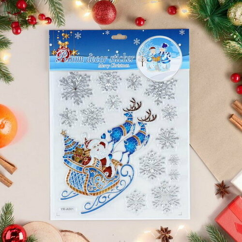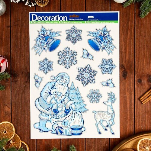 Наклейки на окна "Новогодние" Дед Мороз с подарками, 41 х 29 см (комплект из 7 шт)