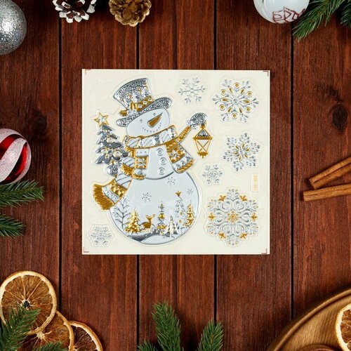 Наклейки на окна "Новогодние" снеговик с фонарем, 24 х 19 см (комплект из 7 шт)