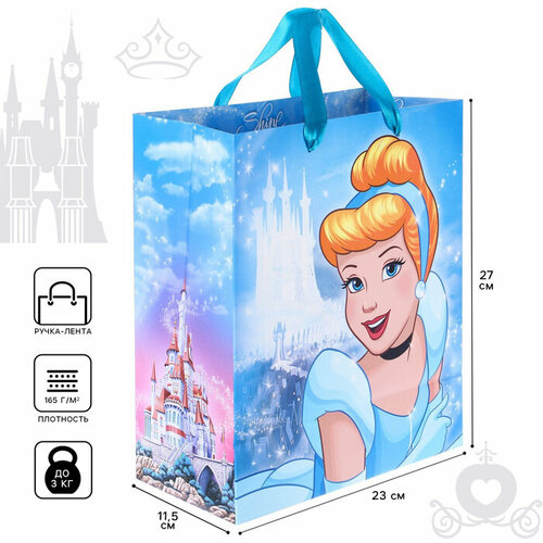 Пакет подарочный "Золушка" 23х27х11.5 см, упаковка, Принцессы