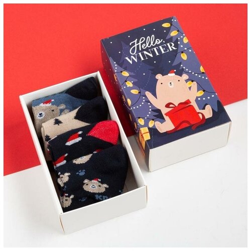 Крошка Я Набор новогодних детских носков Крошка Я «Мишка», 4 пары, 12-14 см