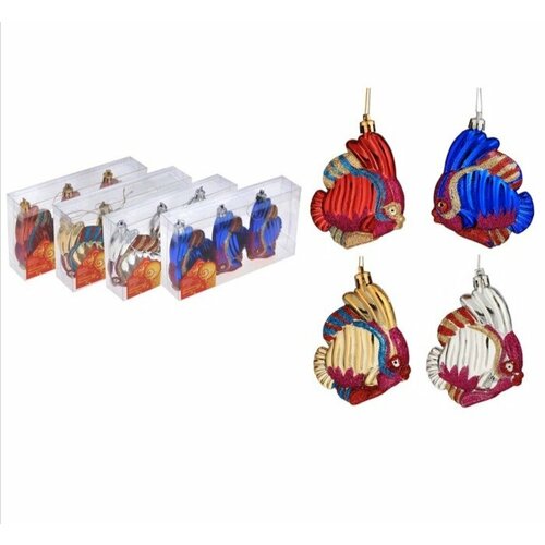 Украшение ёлочное "Рыбка с гребешком" (набор 3 шт) 11 см золото