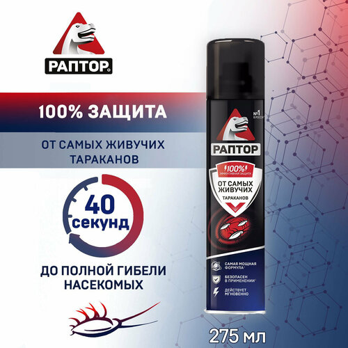 Аэрозоль Раптор повышенной эффективности от самых живучих тараканов 275 мл 1 шт. 185 г 275 мл 365 дн 8 см без отдушки