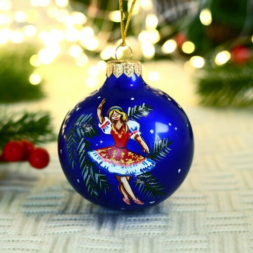 Ёлочный шар d-8 см "Балерина " синий шарик ручная роспись