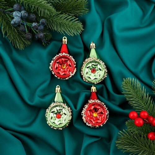 Украшение ёлочное "Фонарик Сказка" (набор 4 шт) 5х8 см, зелёный красный