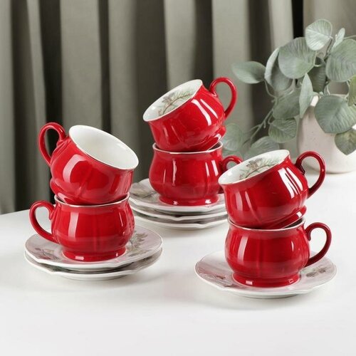 Сервиз керамический чайный «Шишечки», 12 предметов: чашка 200 мл, блюдце d=14,5 см
