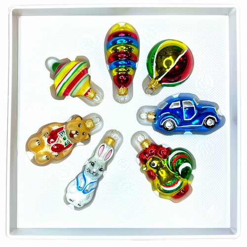 Это изысканное украшение для вашей новогодней елки. Изготовленные из стекла, эти игрушки не только красивы, но и долговечны, что делает их отличным выбором для семейного праздника.