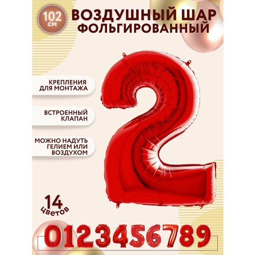 Фольгированный воздушный шар цифра 2 два 100см - Мосшар