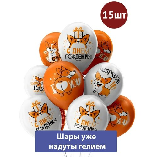 Воздушные шары с гелием С днем рождения Корги 15шт