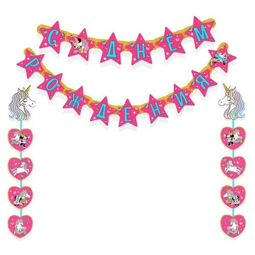 Disney Гирлянда на люверсах «С Днем рождения!», Минни Маус и Единорог