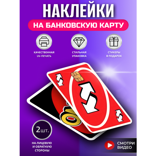 Наклейка на банковскую карту Уно игральная карта двусторонняя (на обе стороны) с вырезом под чип