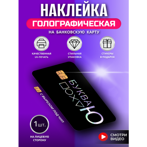 Наклейка на банковскую карту надпись мем Буква Ю голографическая с вырезом под чип