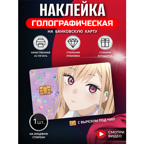 Наклейка на банковскую карту аниме Марин Китагава манга Эта фарфоровая кукла влюбилась Голографическая с вырезом под чип
