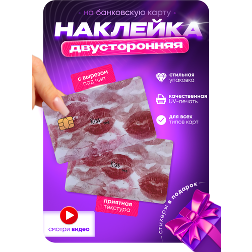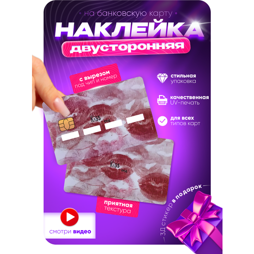Двусторонняя наклейка на банковскую карту Поцелуи губы кисс ми с вырезом под чип надпись Kiss me