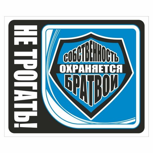 Наклейка "Не трогать! Собственность охраняется братвой" 140х110мм, синяя, Арт рэйсинг