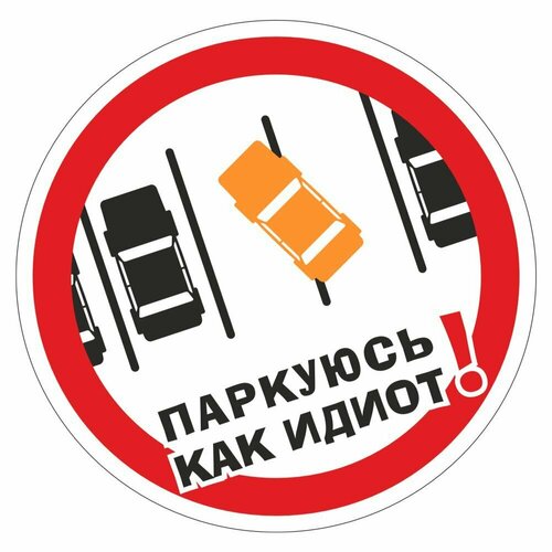 Наклейка "Паркуюсь как .", круг средняя, вид 3, 100х100мм, оранжевая, Арт рэйсинг