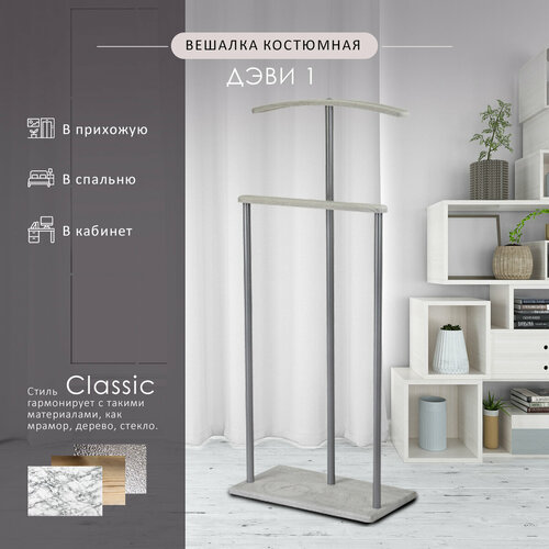 Вешалка костюмная Дэви 004835, цвет металлик/дуб сонома, материалы лмдф, металл