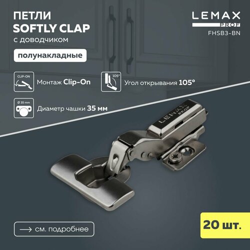 Петля полунакладная мебельная Lemax Prof FHSB3-BN с доводчиком, комплект 20 шт, 48 мм, сталь, черный никель