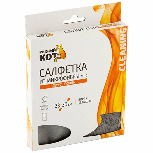 Салфетка универс. 2х-сторон. M-10 Рыжий кот 23х30см. микрофибра цв. в асс.