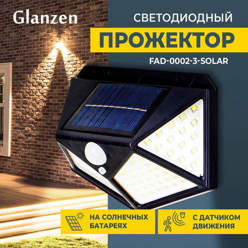Светодиодный прожектор на солнечных батареях с датчиком движения GLANZEN FAD-0002-3-solar