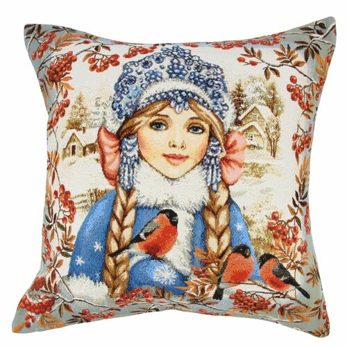 Наволочка новогодняя декоративная / интерьерная на подушку Снегурочка Ветка рябины 45х45 см гобелен
