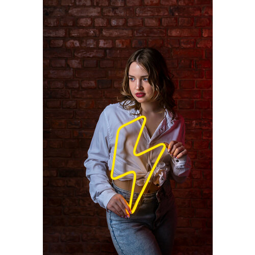Неоновая вывеска PJ Neon Молния, 25х42 см, желтый