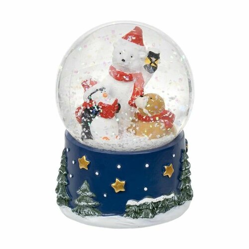 Сувенир новогодний "Волшебный шар со снегопадом" в виде медведей с пингвином, высота 9,5 см