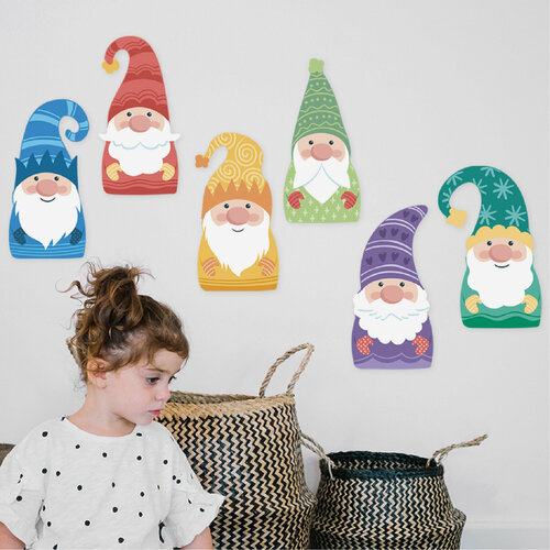 Наклейки для украшения интерьерные новогодние с разноцветными фигурками гномов