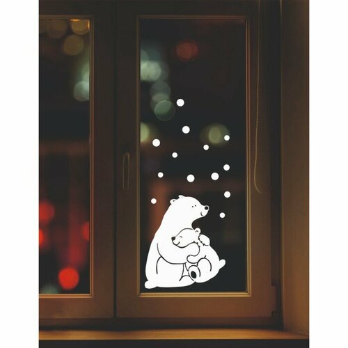 Наклейка декоративная для окон "Медведица с медвежонком" 35х41 см (снег 10х20 см)