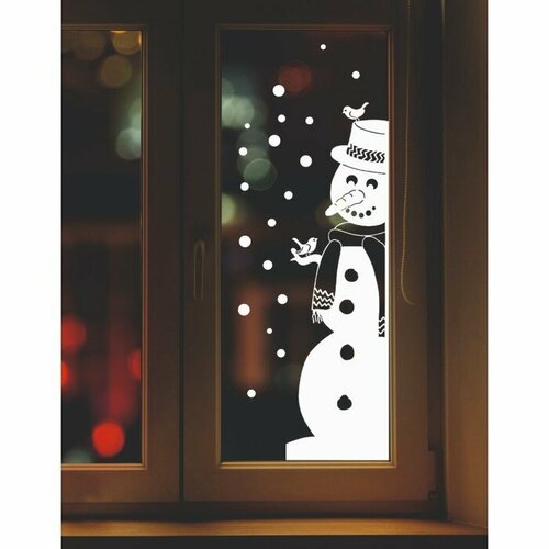 Houseinterio Наклейка декоративная для окон "Снеговик" 29х100 см (снег 10х20 см)