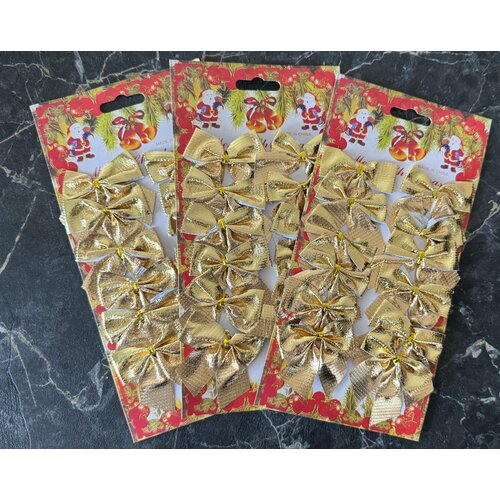 Елочные украшения золотистые Бантики набор 36 штук/ новогоднее украшение на елку, для декора дома и в подарок / 5*5 см