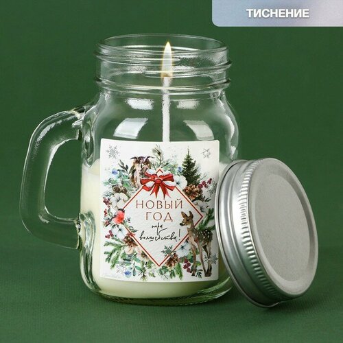 Новогодняя свеча в банке с ручкой «Пора волшебства», вишня, высота 8,5 см