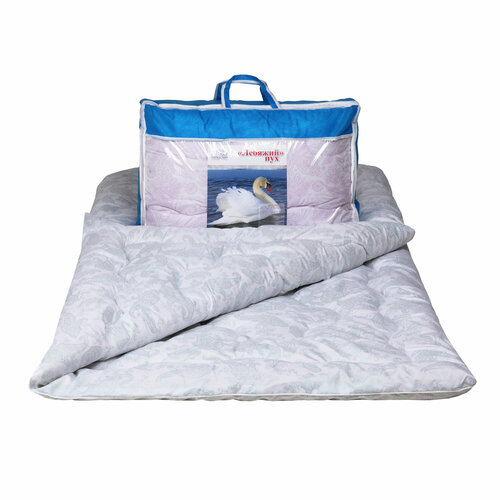 Одеяло 1.5 спальное, одеяло лебяжий пух, 140х205 см, всесезонное, ткань чехла глосс-сатин, гипоаллергенное, стеганое