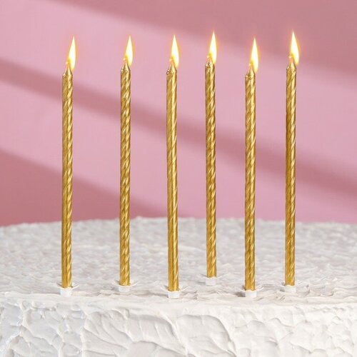 Свечи для торта "Классические" с подставкой, 13 см, 6 шт, золотые