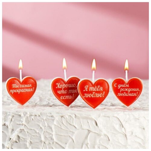 Набор свечей для торта на шпажках "Сердечки с надписью", 6,6х3,8 см, 25 гр, 4 шт./В упаковке: 1