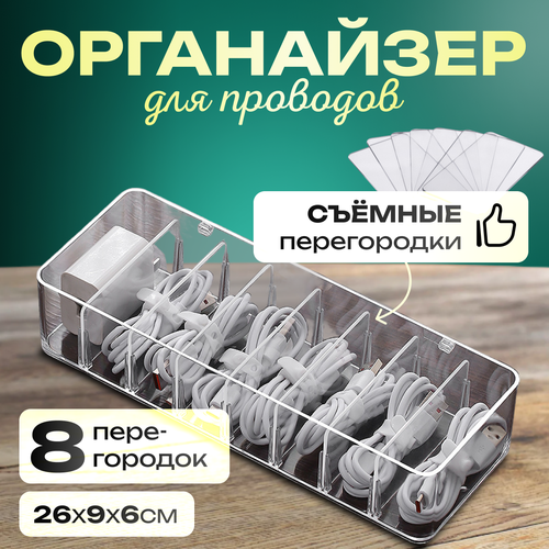 коричневыйОрганайзер для хранения проводов, косметики и мелочей – это идеальный способ создать порядок и организовать все самые необходимые вещи на вашем столе. Контейнер для хранения позволит удобно и в одном месте хранить провода, маленькие аксессуары, украшения и даже строительные расходники! Органайзер выполнен из прочного пластика и поделен на 8 отсеков – отделений. В нашем органайзере можно хранить usb - провода и кабели, шнуры питания, флешки, зарядные блоки и переходники для зарядки, акустические провода для наушников и саму гарнитуру, аксессуары для мобильных телефонов, для домашней или офисной электроники.