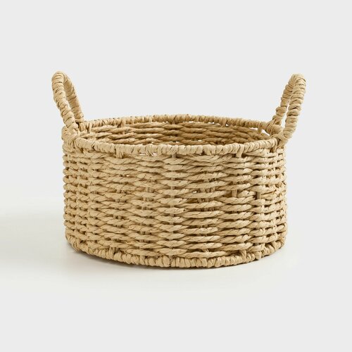 Корзина для хранения, 20х10 см, плетеная, с ручками, целлюлоза, круглая, Braided