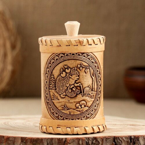 Туес "Ёжик", 8 х 8 х 14 см, береста