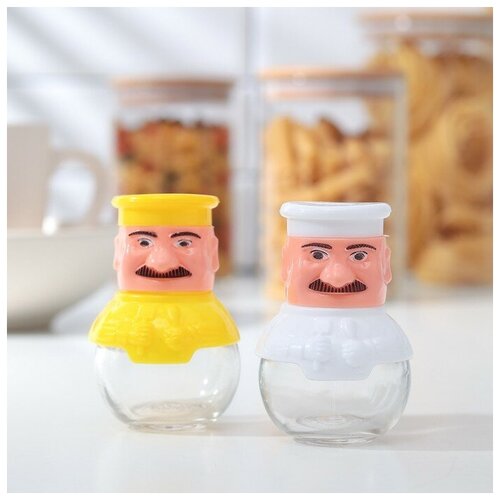 Набор для специй на подставке «Поварёнок», 2 предмета: солонка, перечница, цвет микс